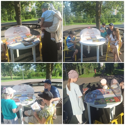 Проект библиотеки "Литературная веранда" не сдает обороты. Каждую неделю по вторникам и средам с 16.00 до 18.00 мы читаем увлекательные книги вместе с детьми и их родителями на открытой площадке парка "Континент".