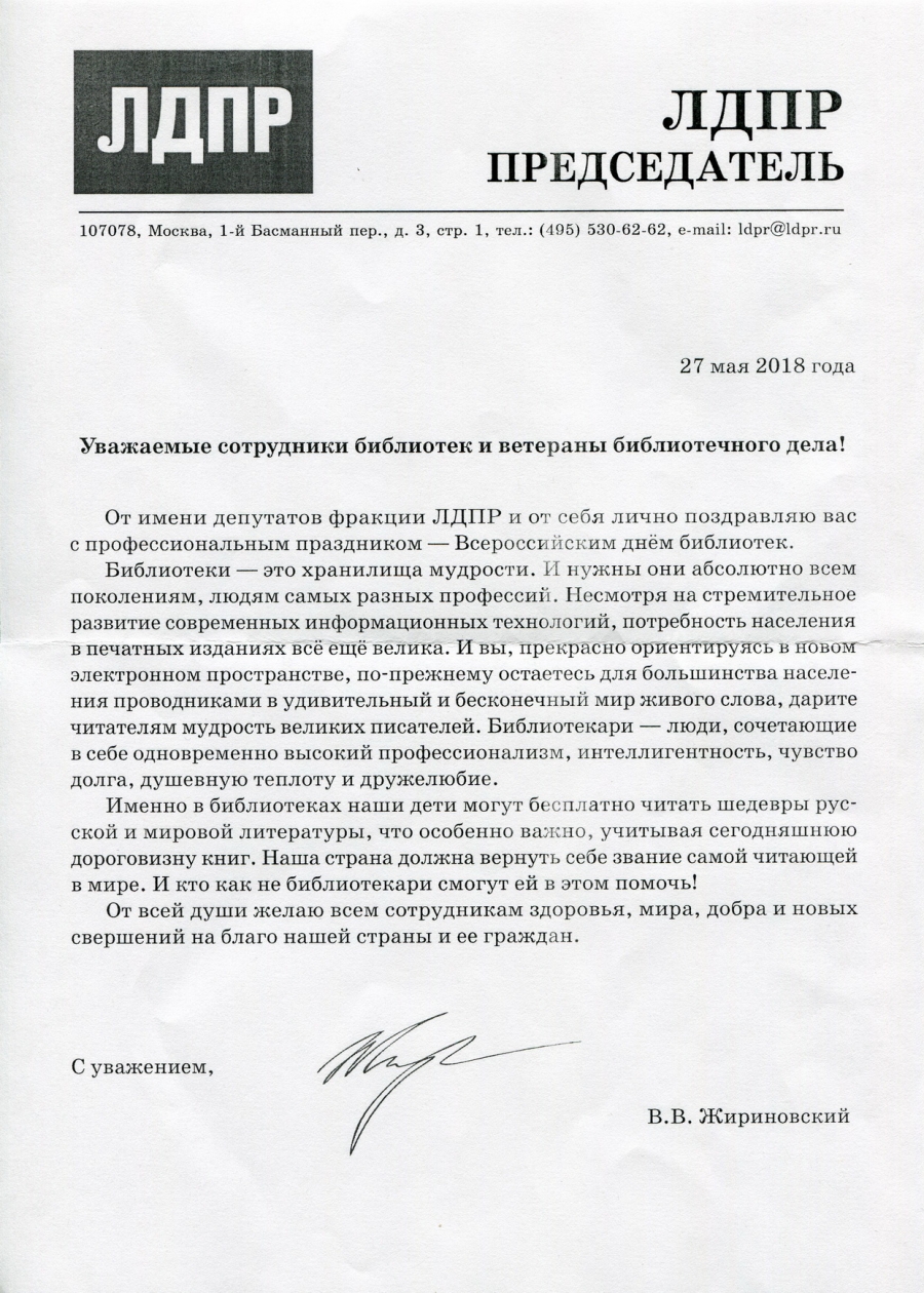 Лидер ЛДПР поздравил нас с наступающим праздником