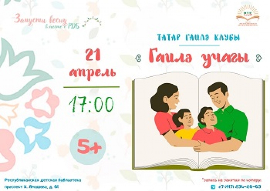 21 апреля в 17:00 ГБУК РТ «Республиканская детская библиотека» запускает новый проект «Гаилә учагы» («Семейный очаг»).