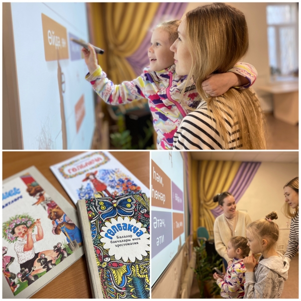 На этот раз тема встречи была "Моя семья". Дети с интересом участвовали в увлекательных играх, где нужно было сопоставить татарские слова с их картинками.