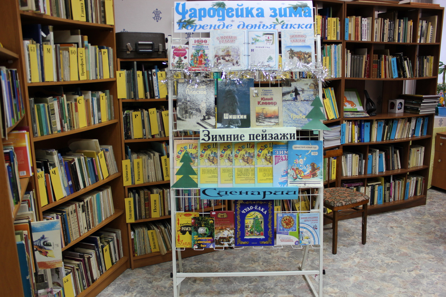 Ребята рассматривали картины русских художников, слушали отрывки музыкальных произведений, хором рассказали стихотворение о зиме. Также отгадывали загадки, играли в игры. Мероприятие сопровождалось яркой электронной презентацией. Была оформлена книжная выставка «Чародейка Зима».