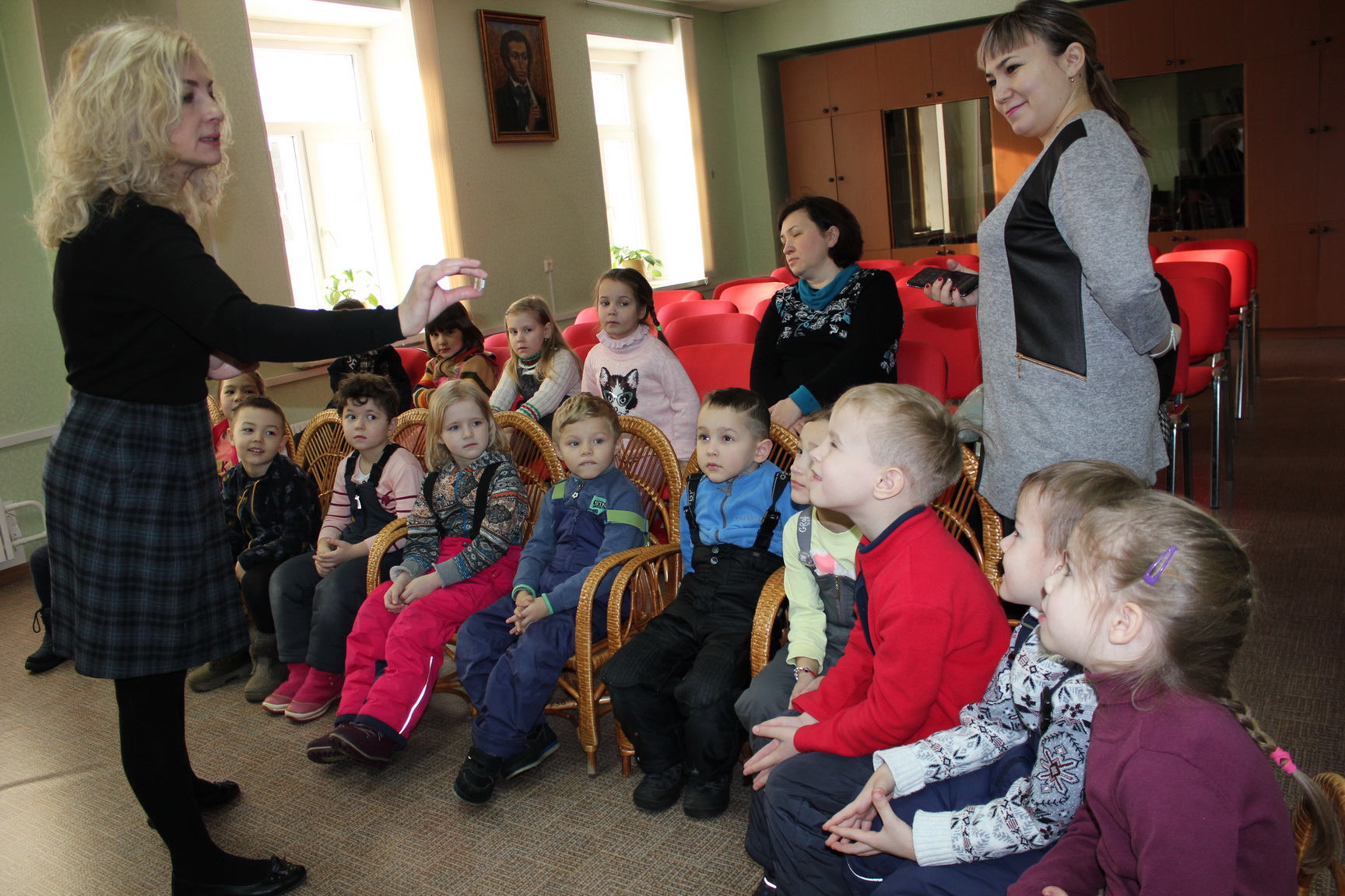 6 февраля к нам в гости впервые пришли ребята из детского сада № 297. Специально для них мы провели экскурсию по библиотеке. Ребятам рассказали, что такое библиотека и для чего она нужна, познакомили с абонементом, «Читайкой», читальным залом и национально-краеведческим отделом, показали и рассказали про выставки-экспозиции «Театр – особый и прекрасный мир» и «Детская книга на пьедестале почета», а также про необычные книги, которые живут на полках в библиотеке.
