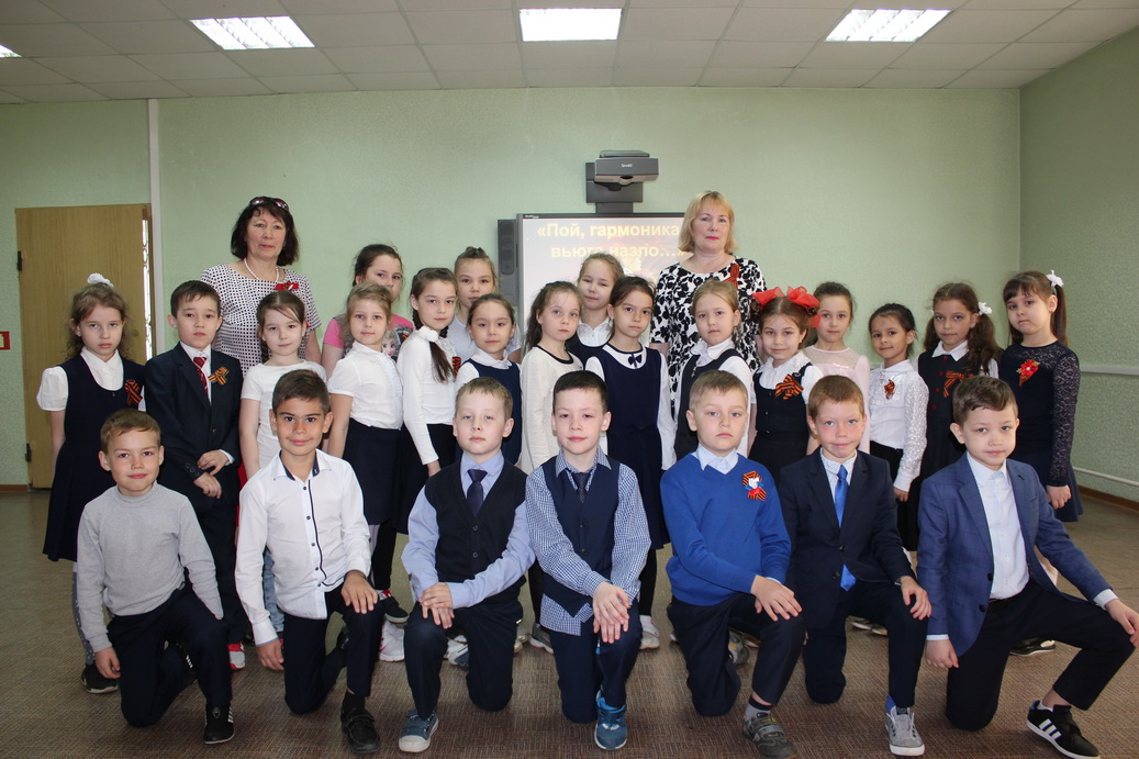 В честь празднования 74-й годовщины Победы в Великой Отечественной войне сегодня в библиотеке прошла литературно-музыкальная композиция «Пой, гармоника, вьюге назло…» для учащихся 1 «В» класса гимназии №155.