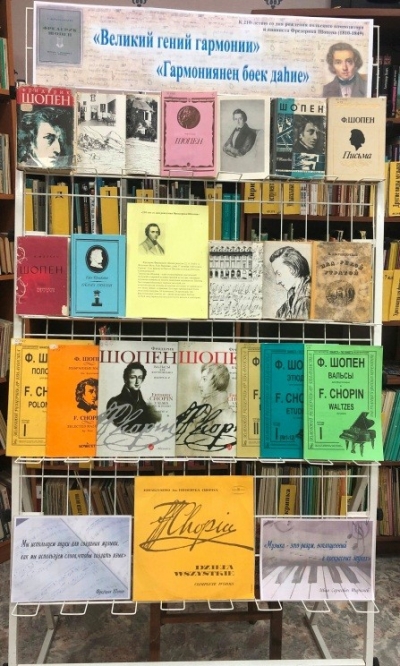 21 февраля 2020 года в отделе литературы по искусству оформлена книжно-иллюстративная выставка «Великий гений гармонии», посвященная 210-летию со дня рождения величайшего польского композитора и пианиста Фридерика Шопена (1810-1849).